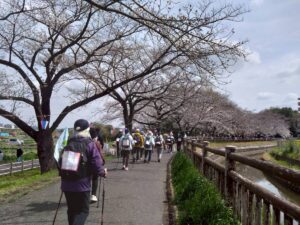 見沼代用水の桜を楽しみながらのノルディックウォーキングを楽しみました。