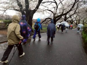3月29日の1日目は、雨の中のノルディックウォーキングとなりました。